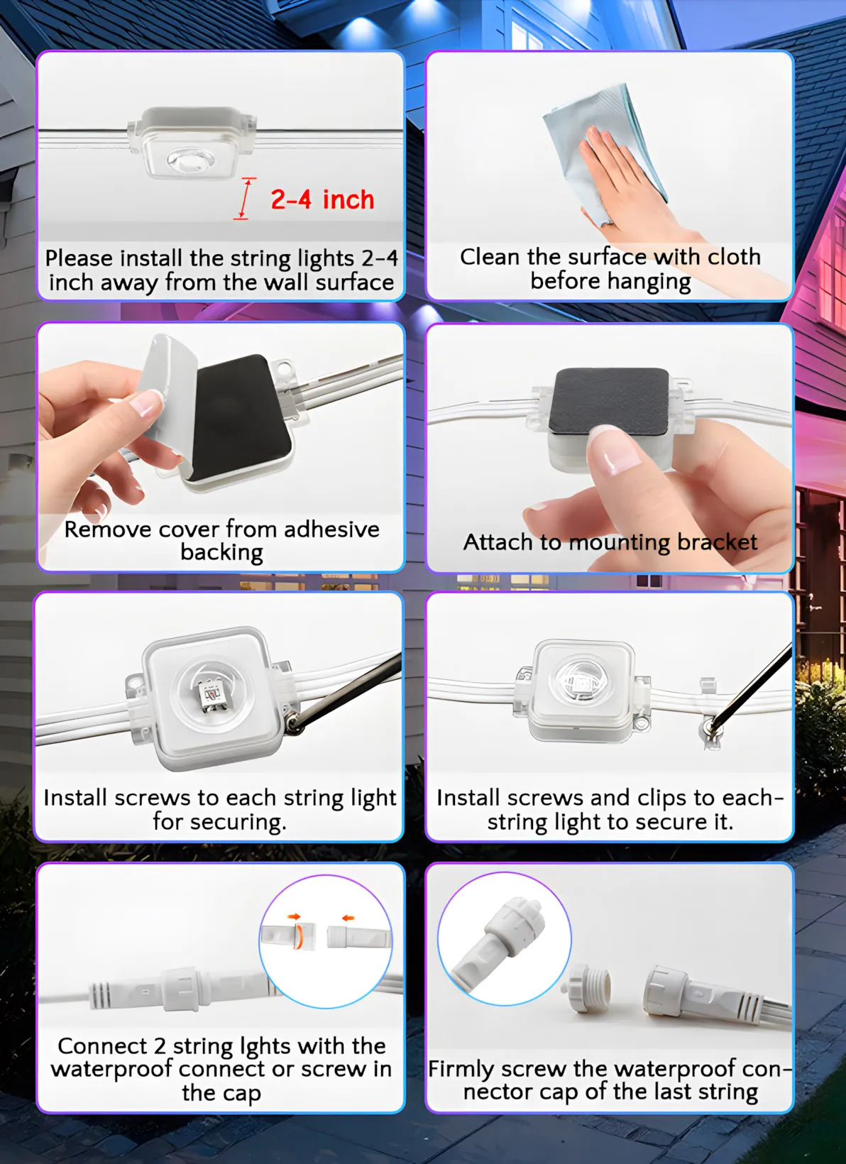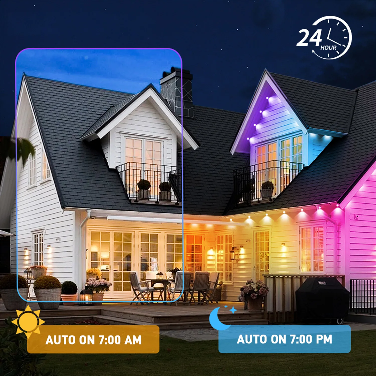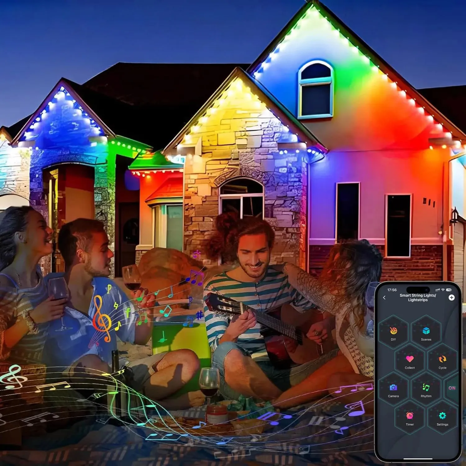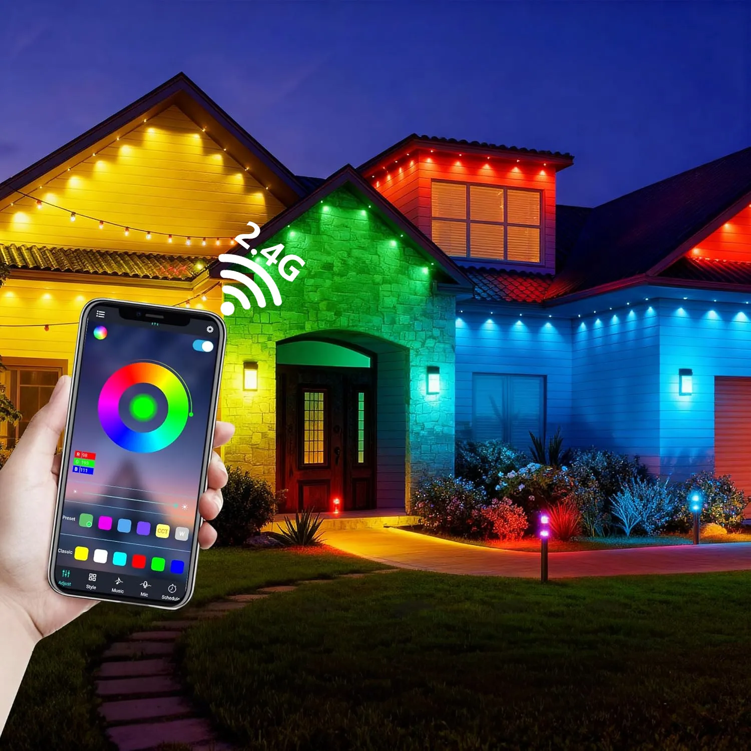 With fast and reliable 2.4G WiFi, you can effortlessly control your outdoor lights anytime, whether at home or away. Adjust colors, brightness, and modes directly from your phone without stepping outside, instantly transforming your patio, garden, or backyard ambiance. From romantic evenings to lively gatherings, everything is at your fingertips, making your smart outdoor experience convenient, comfortable, and full of enjoyment.