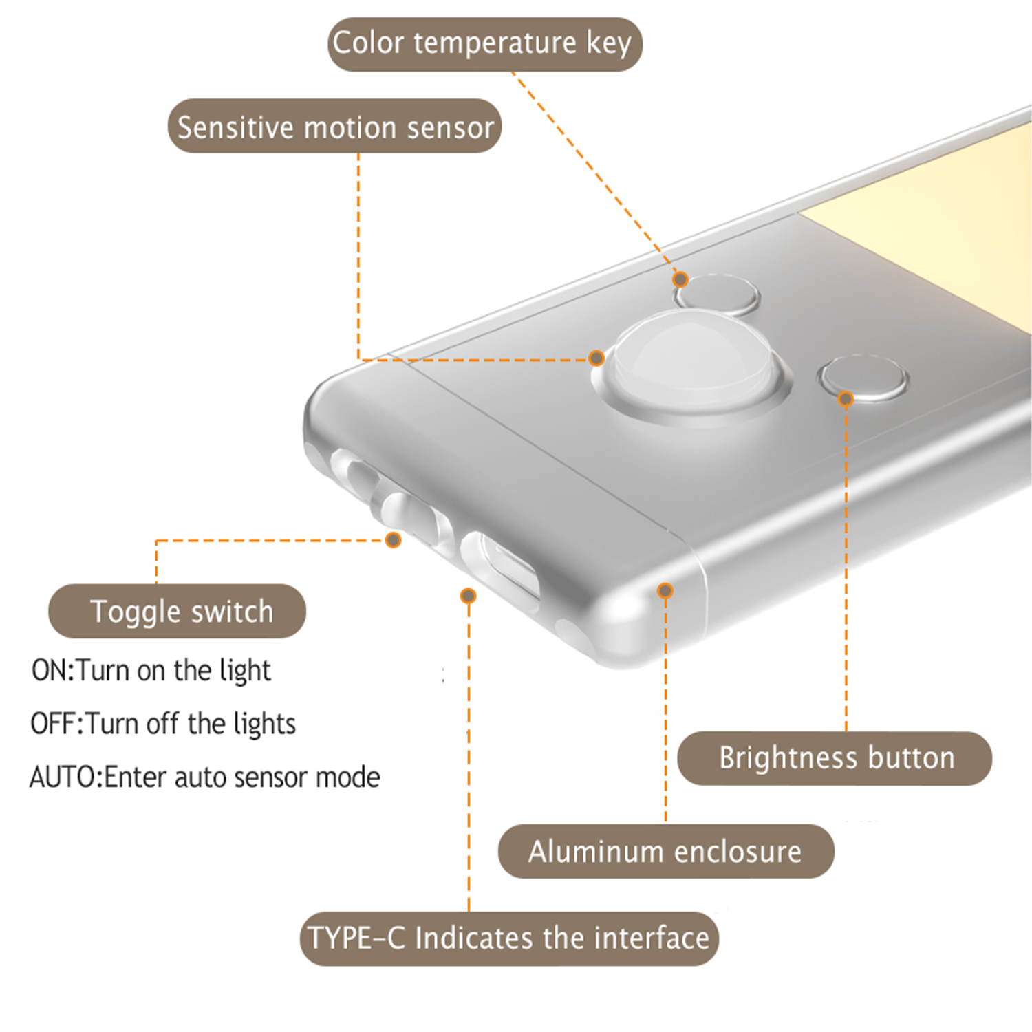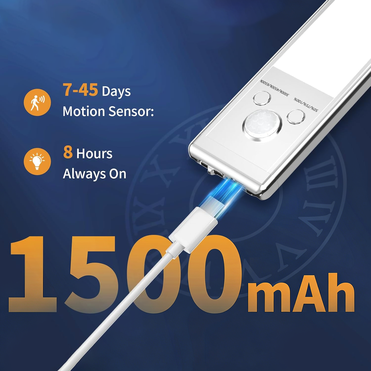 The built-in 1500 mAh battery provides long-lasting usage, and the light automatically turns off 20 seconds after no motion, saving energy.